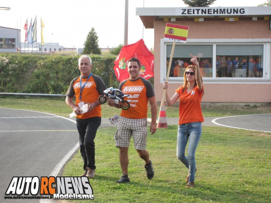 Cette compétition internationale qui s'est déroulée jusqu'au 25 août dans le sud-est de l'Autriche faisait état de 95 pilotes présents, dont 49 en catégorie Superbike, puis 30 en catégorie Stockbike, et enfin 16 pilotes en catégorie Nitrobike. Avec regroupés au sein des 3 catégories en lice, 13 pilotes Français engagés sur cette course ! Avant d’être une compétition, le World est l’occasion de partager et d’échanger sur une passion commune. De longues heures à bricoler dans les stands à échanger dans toutes les langues (souvent le langage des signes) sur le modélisme. Partager une bière en discutant du dernier practice, de la bonne trajectoire ou de la dernière astuce... La semaine du World sur le circuit Morac-Graz aura été pour chacun des pilotes une semaine très enrichissante. Malgré la compétition et les différents résultats de chacun, la bonne ambiance dans les stands était présente. Même si très souvent nos pilotes étaient plongés sur leurs motos, il y avait toujours une bonne occasion de lâcher la pression pour une franche rigolade. Nos deux compères inséparables, Eric Bezombe et Fabien Risbourg, deux figures incontournables des Worlds étaient toujours là pour mettre l’ambiance… L’équipe de France était très soudée avec toujours un pilote disponible pour rendre service à celui qui en avait besoin. Les pilotes expérimentés tels que Ludovic Chauveau ou Nicolas Hammerton ont pu partager leurs astuces ou conseils tout au long de la compétition, en particulier lors des préparations motos pour les conditions pluie. De son côté, autant dire aussi que le Team Manager Frank Brunet aura pris sont rôle a cœur. Ce dernier était toujours présent pour soutenir, écouter les requêtes et défendre son équipe. Mention spéciale également à Serre Déborah qui à fait un World extraordinaire ! La pilote Française la plus performante en catégorie Stock. Dany Boudin le champion du monde de la carrosserie a su quant à lui attirer l’attention de Madame Lutz lors du concours de carrosserie. Pour la petite histoire, Madame Lutz n'est autre que la femme du nouveau champion du monde de la catégorie Stock. C'est elle qui fût choisie pour sélectionner les plus belles motos. La carrosserie de Déborah Serre ayant remporté le prix. Côté piste et pilotage, Antoine Brunet nous a fait rêver comme à son habitude avec ses trajectoires millimétrées. Le circuit était plutôt technique et avait un grip excellent. A tel point que nous aurions pu croire que les organisateurs avaient passé une machine qui décape le bitume pour améliorer le grip à l’approche de la compétition ! Tout au long de ce championnat, nous avons pu apprécier la rigueur Autrichienne pour le contrôle technique, comme le contrôle de la tension des batteries avant chaque manche de Stockbike. De la même façon, soulignons que des sanctions étaient fermement appliquées pour les ramasseurs n’étant pas à leur poste. Merci en tous les cas au Club Morac-Graz pour son accueil et son dévouement à l'égard de la catégorie moto. Et décernons une mention toute particulière à son président : un certain " Ed " qui était omniprésent quoi que l'on fasse, où que l'on aille, et quel que soit le moment. Nous en sommes presque arrivés a nous demander si il ne dormait pas sur le circuit ! Le matin dès 7 heures quand nous arrivions sur place pour préparer les motos pour la pluie, il était déjà là, et le soir quand certains pilotes bricolaient leur moto jusqu’à minuit ou bien une heure du matin, il était encore là. Chapeau bas !