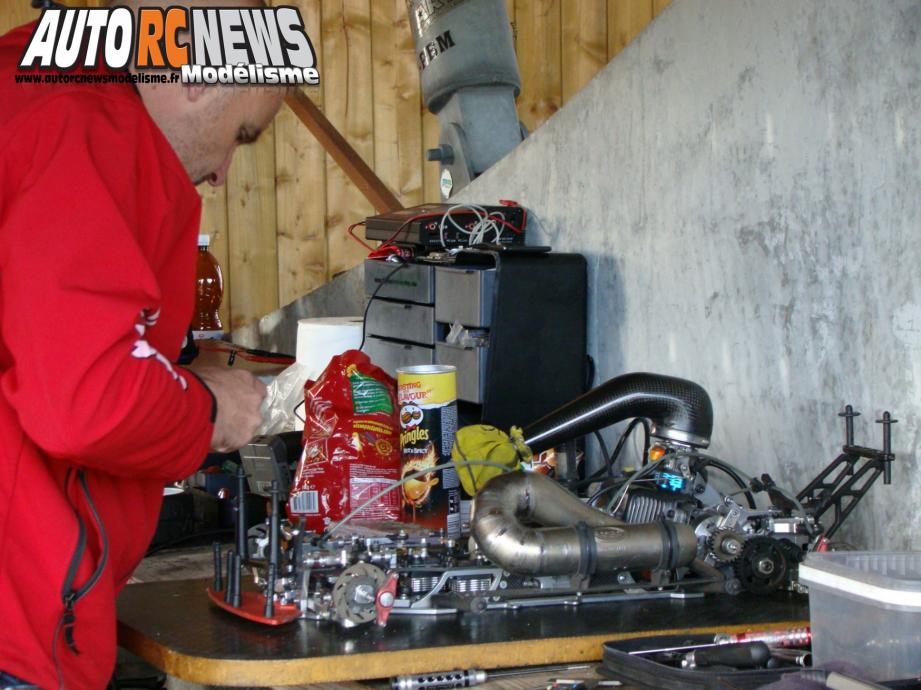 Dans les stands, les pilotes et le matériel campaient tous deux sur leurs positions, assez conservatrices on doit bien le dire depuis le début de la saison. Il n'empêche, quelques bruits de couloir nous plaisent à penser que Christophe Padovani pourrait changer de crèmerie, donc de voiture, dès l'an prochain. Nous n'en dirons pas plus.... Hormis cela, l'attraction des stands était constituée par la présence du nouveau châssis Mecatech FW01 dévoilé et distribué par Hobbycenter. Une auto qui comporte quelques pièces de provenance FG comme le réservoir, pour ne citer que lui.