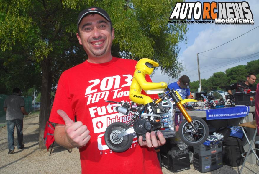 Depuis le début de la saison, celles-ci sont marquées par la venue de nouveaux pilotes que l'on retrouve dans les catégories Supermotard A et B. Il en va ainsi de Jean-Michel Schmitt inscrit aux commandes d'une M5 Cross revêtue de pièces en carbone, puis de Jérôme Rolland, signataire de performances prometteuses dans la catégorie B. Et encore de Maxime Mille, l'une des figures bien connues du challenge qui roule désormais lui aussi sur une M5 Cross Anderson façon piste ! A signaler aussi dans la catégorie deux roues, la présence de Jérôme Chantron, ex-pilote du défunt challenge Tamiya Cup des années 90 qui nous présentait ici une moto particulièrement affûtée aux petits oignons !