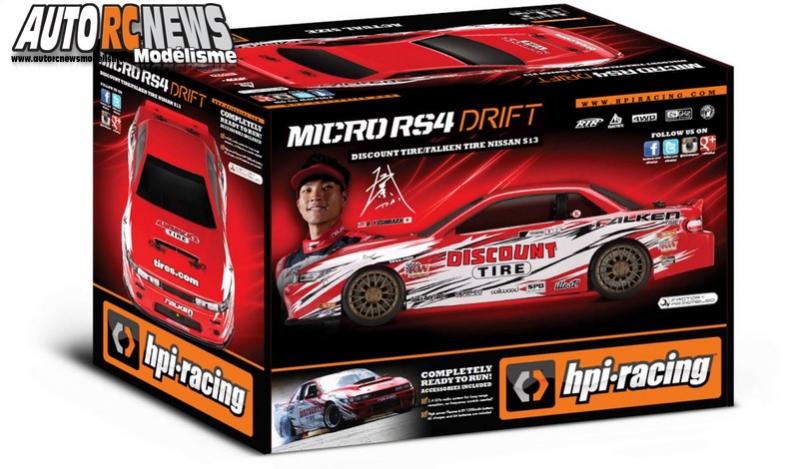 Bonne nouvelle pour les amateurs de Drift et de courses en salles, la réplique de la Nissan S13 du pilote Japonais Dai Yoshihara arrive prochainement sous les traits de la Micro RS4 à l'échelle 1/18ème. La voiture parrainée par " Discount Tire " sera livrée avec des pneus durs spécifiques à la catégorie, ainsi qu'un accu Ni-Mh de 1200 mA. Un moteur 180 restant d'actualité pour propulser cette mécanique dotée d'une transmission quatre roues motrices intégralement montée sur roulements et d'une suspension à poussoirs. Avec en prime, une électronique étanche comme l'intégralité de la gamme HPI désormais.