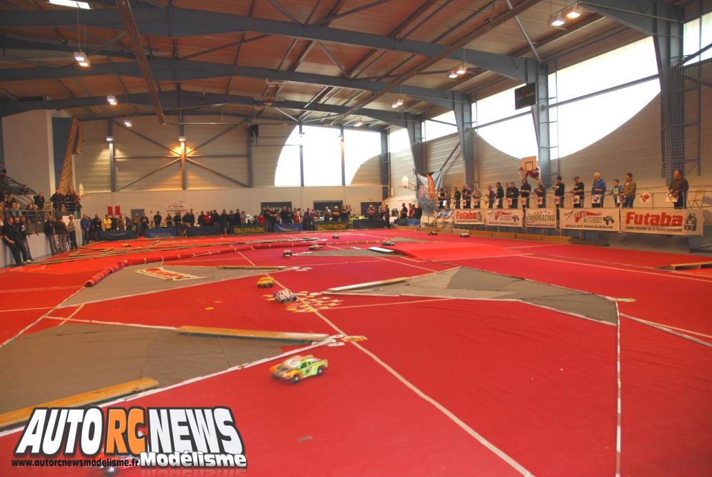 Pour faire face à l'invasion de près de 90 pilotes sur cette course, avec 16 autos amenées à être en action en quasi permanence sur la piste, et pour créer aussi l'émulation, les organisateurs avaient décidé de pousser le tracé dans ses moindres recoins. Ils porteront la superficie du développé à 157 mètres, contre sensiblement moins lors des précédentes éditions. Un circuit plus grand donc, mais également plus corsé au niveau des obstacles qui attendaient les autos. La ligne droite principale demeurait à peu près inchangée, toujours devant le podium. En revanche, elle voyait apparaître un tremplin juste avant le premier droite à 180 degrés qui déboule en sortie. Les obstacles avaient été revus et corrigés. Exit les deux bosses décalées que l'on distinguait l'an passé après la ligne droite, et place à une table Américaine surbaissée. Ensuite, les autos se dirigeaient vers une portion plus étroite et plus technique qui nécessitait un sens précis des trajectoires avant de s'engager à nouveau sur un bout droit entrecoupé d'un second tremplin. Dans la continuité, les autos devaient ensuite affronter une succession de virages serrés dont le relief au sol avait recrée des bosses et des ornières avec le concours de cartons dissimulés sous la moquette. Puis le tracé se terminait avec le grand double droite de raccordement de la ligne droite principale, à passer au taquet pour les meilleurs. Pour soulager les mécaniques en cas de sortie de route et tâcher de garder un maximum d'autos en piste en permanence, la partie balisage avait bien entendu été soignée aux petits oignons. Des petits vibreurs délimitant par ailleurs les parties les plus à risques ou bien les moins visibles.