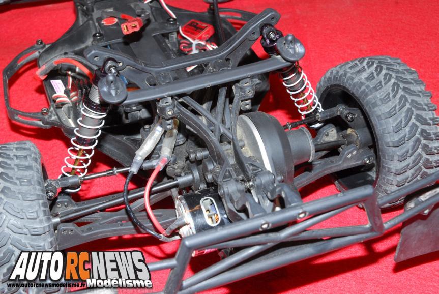 Les amortisseurs d'origine avaient été remplacés par les modèles option usinés en aluminium de chez HPI.