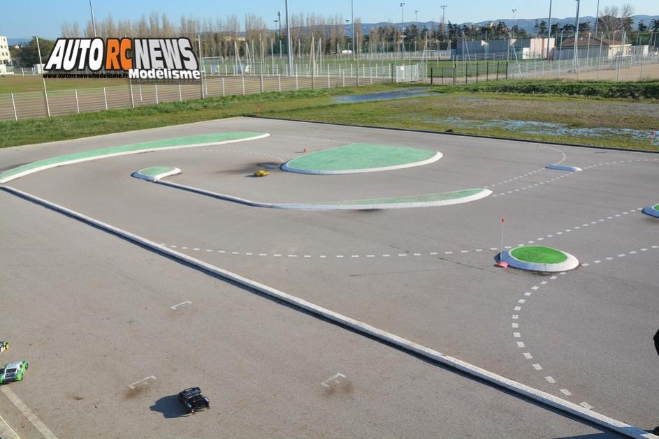 Le circuit du club MRCM de Marignane comporte de multiples balises constituées de plateformes en ciment peint.