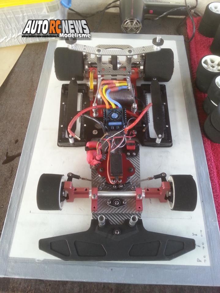 La Forfaster Z1 de Cyril Fages a été modifiée. Elle passe du mode thermique au mode brushless. Notez la présence d'accus fixés de manière à former une sorte de triangle.
