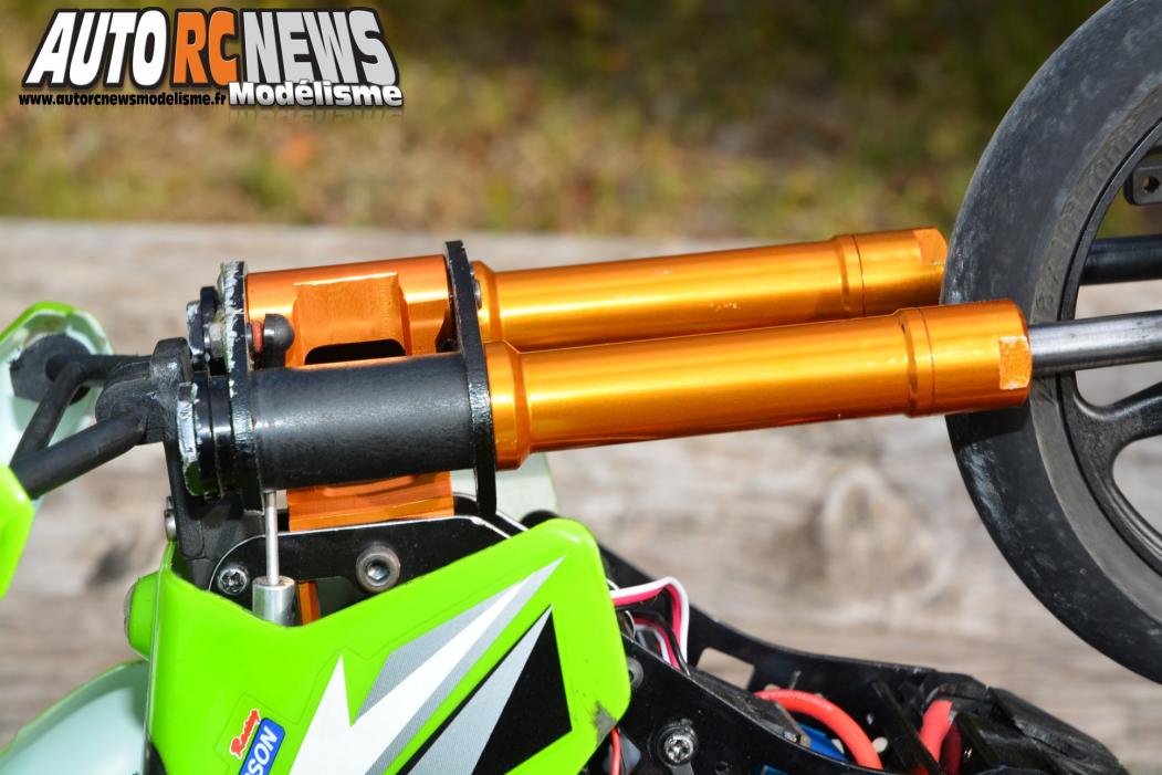 Les amortisseurs de direction sont légion dans cette catégorie deux roues. Ils peuvent intégrer directement la tringlerie du servo de direction, ou être rapportés de manière séparée.