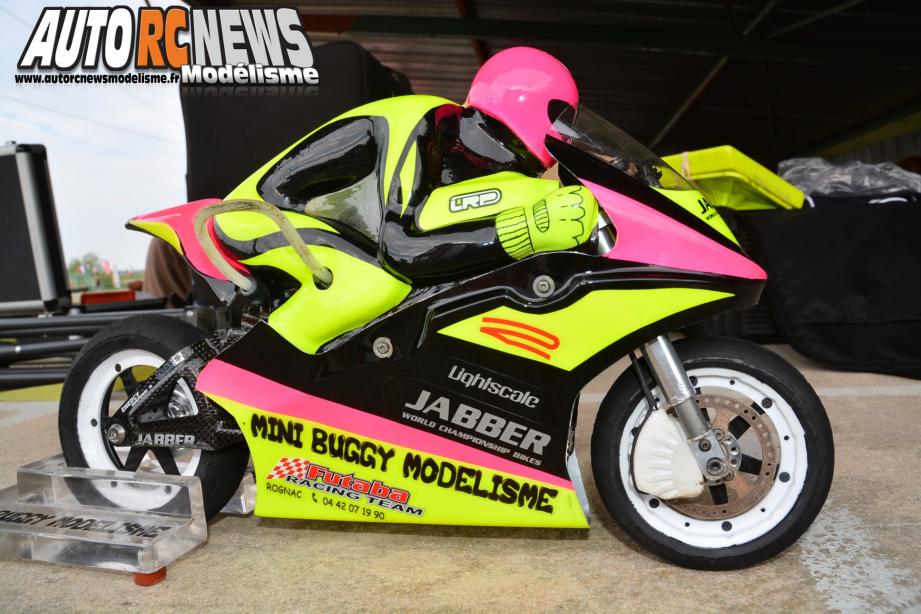 Les pilotes et les divers teams représentés ici avaient fait de réels efforts concernant la décoration des machines, comme en atteste ici le travail réalisé sur ces motos du Team Mini Buggy Modélisme de Rognac que nous apercevons ici.