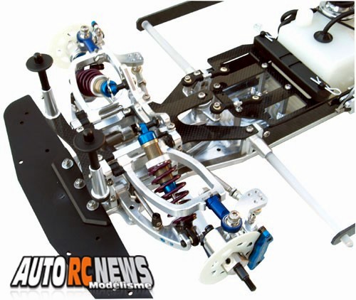 Son train avant continue de proposer au compétiteur un nombre important de réglages comme celui consistant par exemple à pouvoir ajuster la hauteur des bras de suspension, ou bien celui permettant d'ajuster le centre de roulis du véhicule. Ce même train avant étant par ailleurs livré avec une barre antiroulis et un save servo réglable en dureté. Bien sûr, l'Ackerman demeure réglable sur plusieurs positions, en particulier par les porte fusées, de même que les amortisseurs, réglables par le haut de leur support ou par les triangles inférieurs.