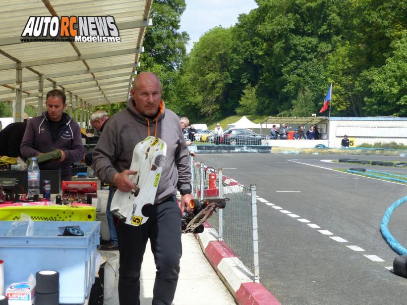 Dans la catégorie Elite, cela semble mal parti pour Serge Christiany dont la voiture se retrouve calée dans le 1er tour. Serge qui repart d'entrée de jeu avec près d'un tour de retard sur la meute de furieux ! A signaler aussi en aparté, le pole man Julien Mathieu qui est resté coincé en demie par la faute de vis de support moteur cassée alors qu'il était parti pour remporter sa sous finale ! La finale sera également entachée par des soucis mécaniques qui viendront accabler Brice François. Dès le départ de la course, Fabien Warembourg va s'emparer du commandement des opérations et mener un train d'enfer à toute la concurrence. Un rythme soutenu que seul Stéphan Nicaud semble en mesure de pouvoir suivre à force de régularité, même si du fait d'un changement de pneus capricieux, ce dernier reste pour le moment en retrait. A 15 minutes Fabien Warembourg se trouve toujours en tête. Il possède un bon tour d'avance quand sa voiture se met à caler dans les minutes qui vont suivre. Dès lors, au fur et à mesure de la couse, Fabien concèdera du terrain et devra céder sa place de leader à Stéphan Nicaud qui finit par lui ravir la tête de course. Cette finale laissera aussi sur le carreau Philippe Lascoux. Longtemps positionné 3ème, celui-ci devra rétrograder en 9ème position en raison d'une couronne cassée. En arrière plan la SPM de Rodolphe Brincat aura joué la carte de la régularité. Celle-ci sera payante puisque Rodolphe parvient à se hisser à la 3ème place du podium derrière le pilote Italien Massimo Panero. Quant à Brice François, il termine en 4ème position devant Frédéric Ruiz.