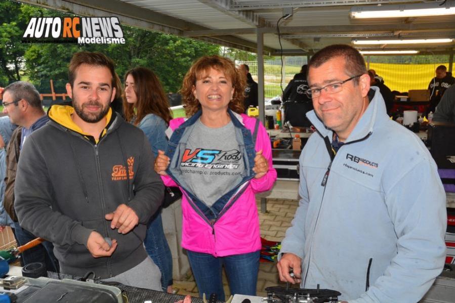 Brigitte Lacroix était venue soutenir ses pilotes pour le compte de sa société VictoSport qu'elle dirige en compagnie de Rody Roem. Nous l'apercevons ici en compagnie de Romain Delaunay et de son papa.