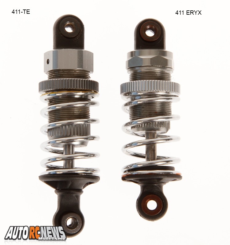 A gauche les amortisseurs d'une 411 classique. A droite les nouveaux modèles raccourcis de 6 mm.