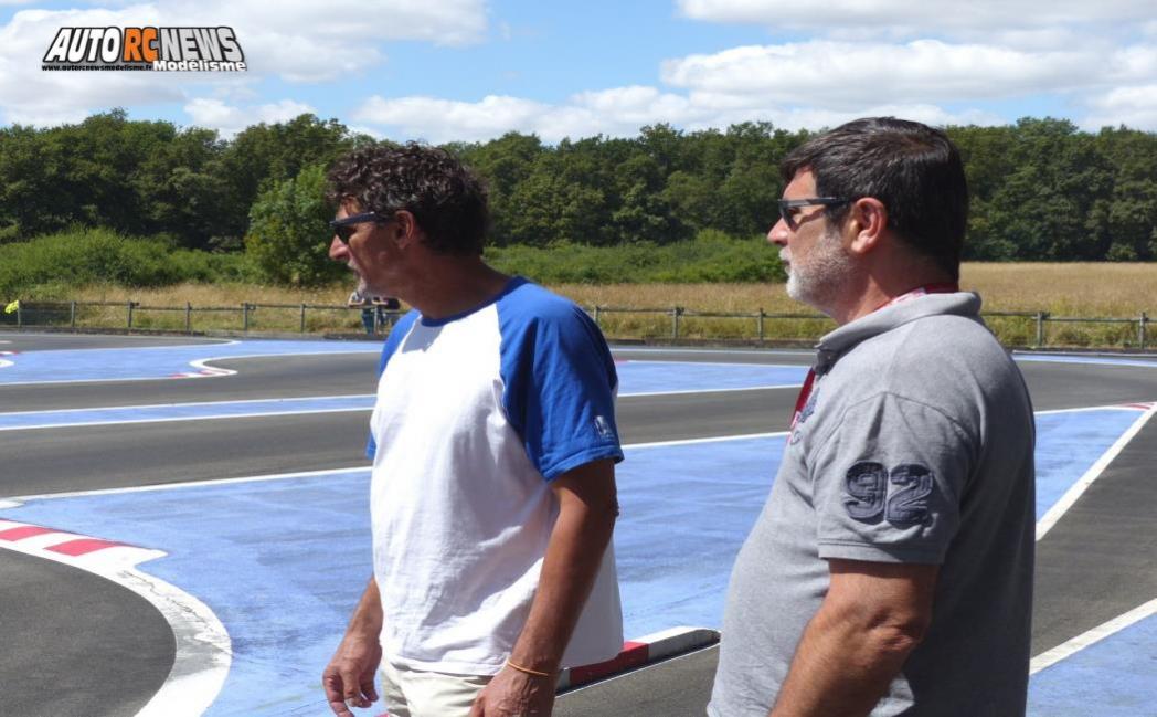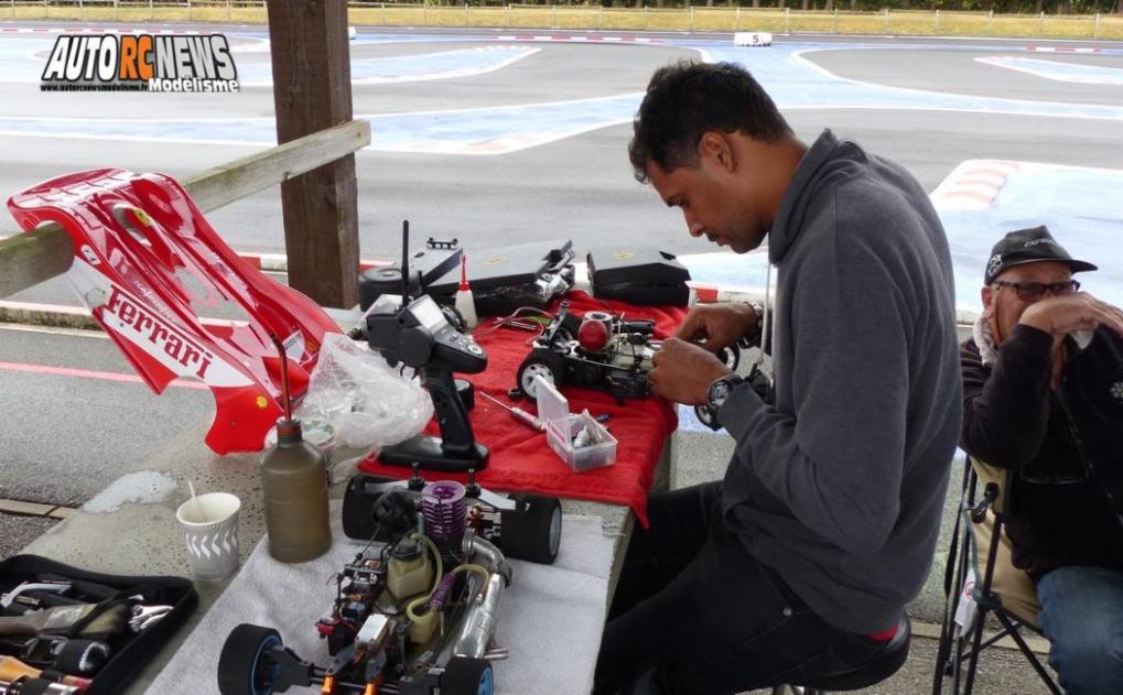Patrick Ouensanga sous la surveillance de l'ex champion du monde de piste 1/8ème thermique Rody Roem.