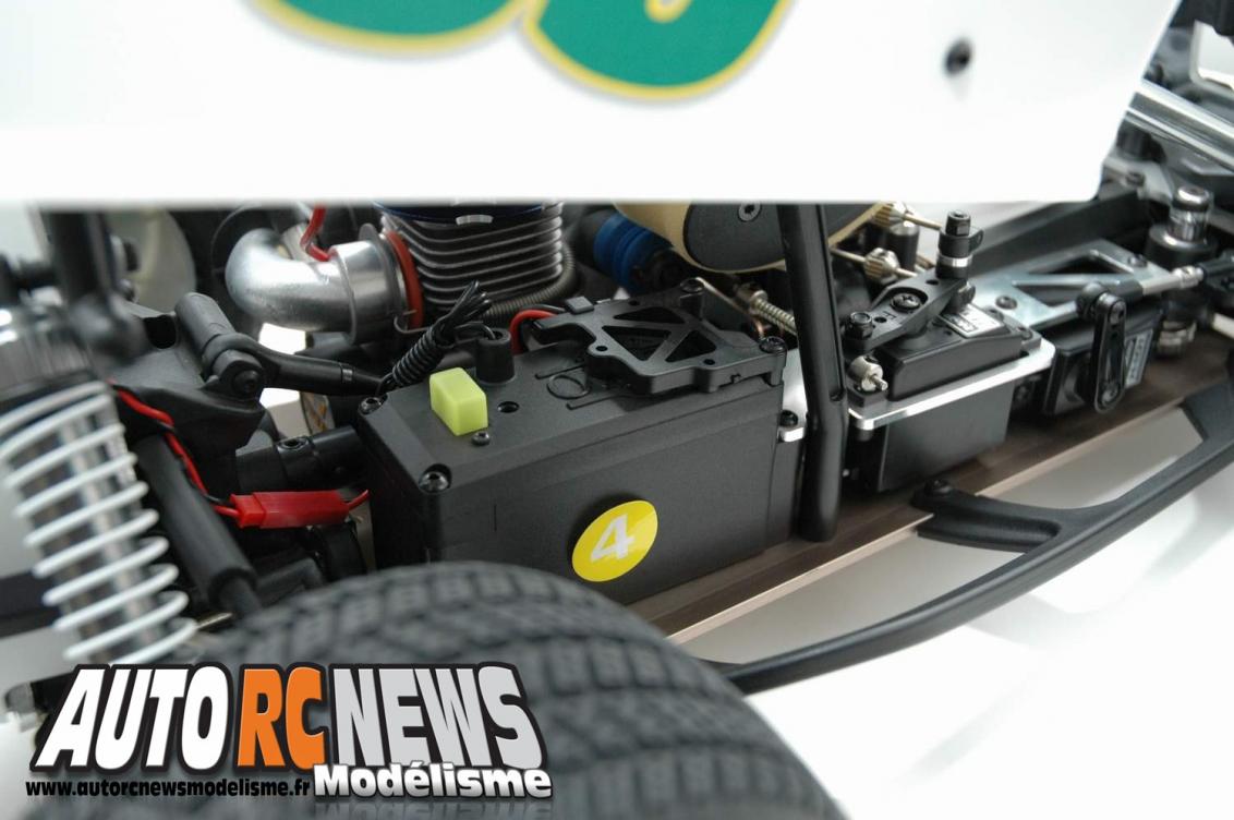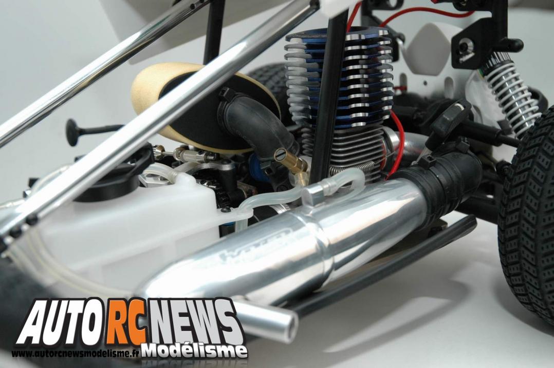 La motorisation est confiée à un moteur maison Hyper 21 à tirette de 3,5 cm3. L'échappement possède une finition polie.