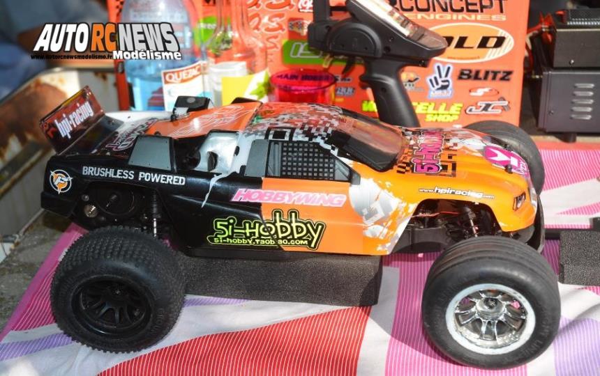 La voiture de Christophe Taravel. Un Blitz HPI coiffé d'une carrosserie de Firestorm HPI.