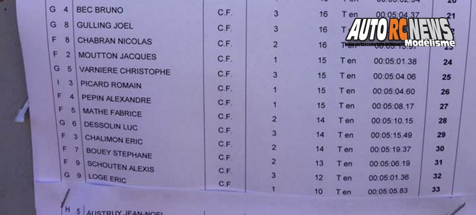 Dans la catégorie Piste 1/10 200mm, victoire de Ludovic Long qui termine avec un boulevard d'avance de près de 9 tours face à Michael Masselot et à Brice Turco.
