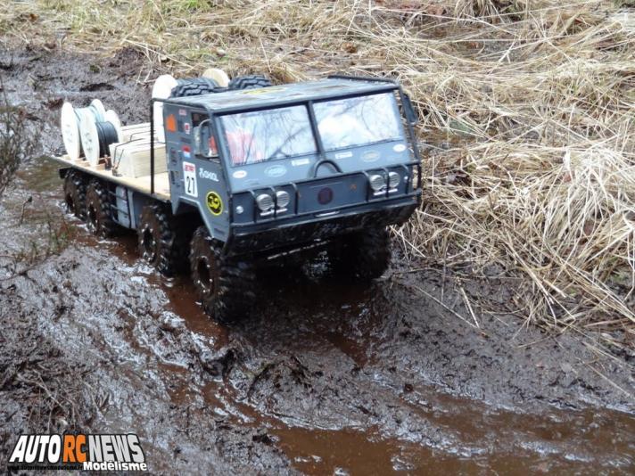 Engin, l'Unimog Gulf de VRallye était quant à lui pourvu d'une carrosserie Tamiya et d'un plateau arrière fait maison. Le tout établi à partir d'une base d'Axial SCX10. L'arsenal de camions présents sur place se complétait du modèle de provenance Russe " Tatra ". Un 8 roues motrices de 13 kilos qui était piloté par Gorghor. Un modèle de marque " Tam " pourvu de 6 roues motrices et de ponts Axial qui intervenait aux mains d'AC77.