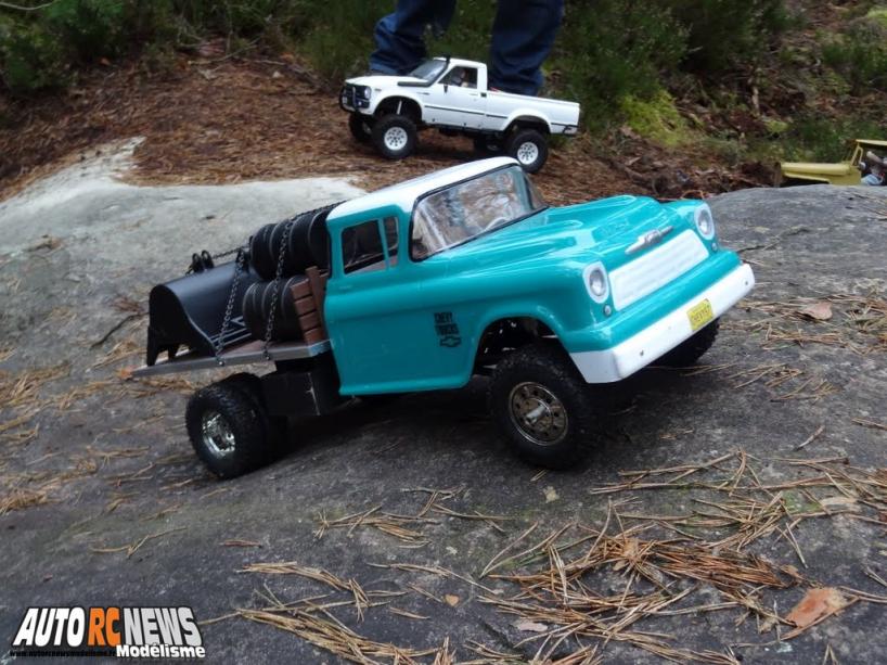 Le camion de Sylvain Cachard obtenu à partir d'un châssis " Comp " Crawler Losi, avec une carrosserie Parma en lexan de Chevrolet 57 et un plateau arrière entièrement fait maison.