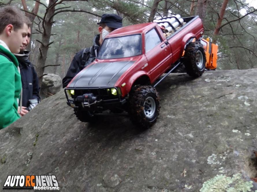 Carrosserie Toyot Hilux avec une mécanique Axial SCX10 sur l'auto de Tazmahale.