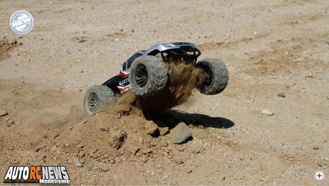 Vaterra RC nous présente aujourd'hui ce nouveau monster truck électrique quatre roues motrices à l'échelle 1/10ème de 49 centimètres de long sur 34 centimètres de large. Une auto pourvue d'un moteur brushless Dynamite de 3300 Kv et livrée avec un accus Li-Po 2S de 3000 mA et son chargeur. L'autre atout de cette auto, c'est qu'elle reçoit par ailleurs un contrôleur de 70 A compatible avec des accus Li-Po pouvant aller jusqu'à du 3S. De quoi envisager des vitesses folles pour cet engin, de l'ordre de 85 km/heure ! Le pilotage de cet engin sera subordonné à la présence de l'émetteur Spectrum DX2E V3 livré à ses côtés. Le Hälix pourra également compter sur son électronique étanche pour fonctionner n'importe où, dans les pires conditions d'utilisation.