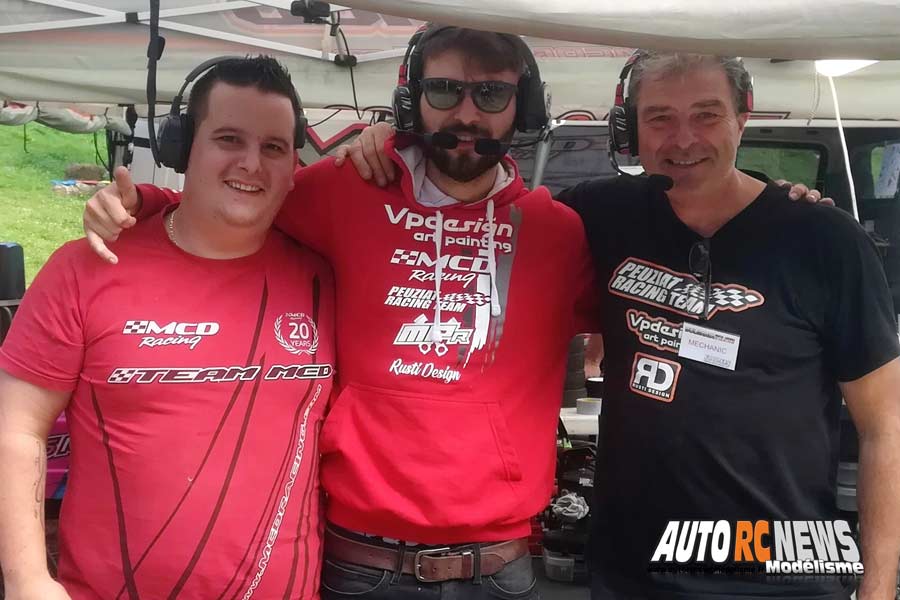Sinan Sunali, le boss de la firme MCD (à gauche) en compagnie du jeune pilote Germanique Sven Rodewald et de son mécano.