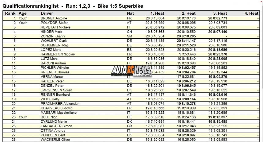 Dans la catégorie Nitrobike, Corentin Blaise sauve l'honneur des Frenchies en parvenant à s'immiscer en 3ème position, entre une armada de pilotes Italiens. Dans la catégorie Superbike enfin, Antoine Brunet a enflammé l'asphalte puisqu'il écope de la pole position au nez à la barbe des