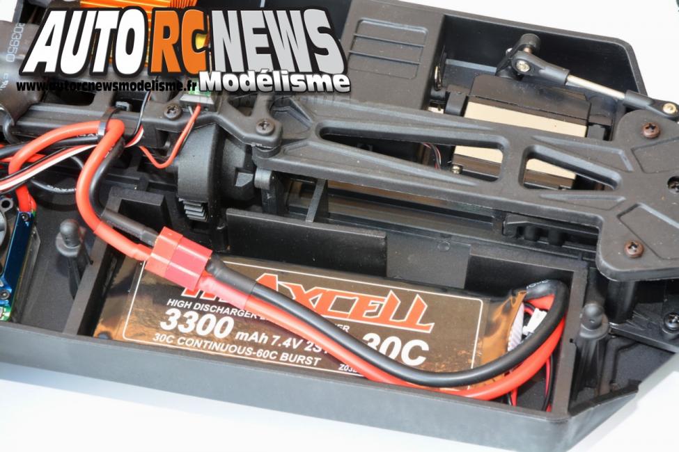 La partie électronique reçoit en série un accu Li-Po Maxcell de 7,4 v de 3300 mA en 30C.