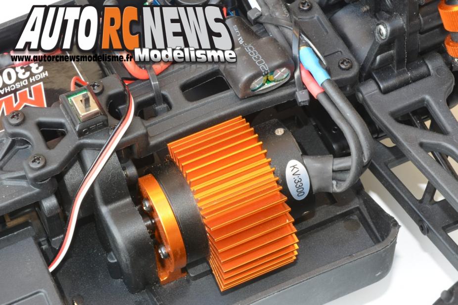 Le moteur des versions brushless est un 3300 Kv paré d'un petit radiateur de refroidissement en aluminium.