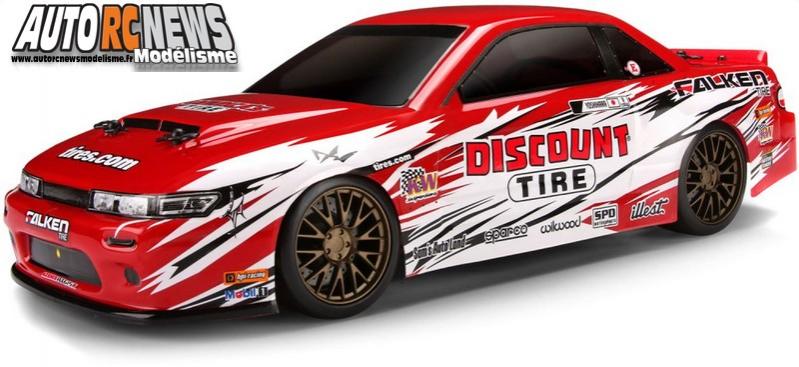 Bonne nouvelle pour les amateurs de Drift et de courses en salles, la réplique de la Nissan S13 du pilote Japonais Dai Yoshihara arrive prochainement sous les traits de la Micro RS4 à l'échelle 1/18ème. La voiture parrainée par " Discount Tire " sera livrée avec des pneus durs spécifiques à la catégorie, ainsi qu'un accu Ni-Mh de 1200 mA. Un moteur 180 restant d'actualité pour propulser cette mécanique dotée d'une transmission quatre roues motrices intégralement montée sur roulements et d'une suspension à poussoirs. Avec en prime, une électronique étanche comme l'intégralité de la gamme HPI désormais.