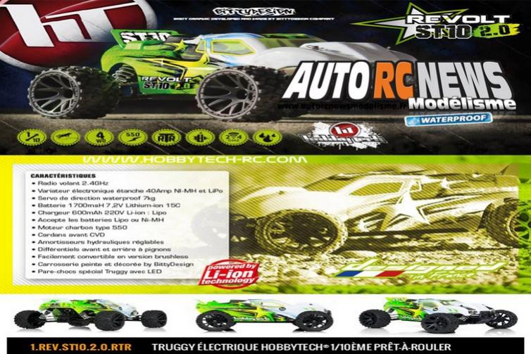 L'importateur Français et fabricant Imodel fait sa rentrée en nous annonçant ce matin la sortie de la toute nouvelle version de ce buggy tout terrain à l'échelle 1/10ème. Nouveau design, équipement encore plus attrayant, possibilité de faire passer l'engin de base d'un équipement brushed à un équipement brushless. Tout semble avoir été mis en oeuvre pour séduire une clientèle avide de ce style de truck. Dans les grandes lignes, et avant de retrouver l'engin très prochainement en test sur notre site, le nouveau Revolt ST10 2.0 se voit coiffé d'une nouvelle carrosserie stylée, toujours confiée au designer Italien Bitty Design. Dans sa version de base, la voiture reçoit une transmission parée de deux différentiels à pignons coniques et de cardans cvd, puis une suspension dotée d'amortisseurs hydrauliques réglables. Le chapitre consacré à la motorisation nous place en présence d'un moteur de type 550 fonctionnant avec un variateur électronique de 40 Ampères et un accu Lithium Ion de 1700 mA Lithium Lion en 15C. Ce TT est bien entendu livré complet et prêt à rouler avec un émetteur à volant en 2,4 Ghz et un chargeur qui délivre du 600 mA en continu. L'électronique de série acceptant également les accus Ni-Mh ou les accus Li-Po pour fonctionner. Et pour la petite touche de fun, on terminera en ajoutant que les pare chocs de cette version sont équipés de leds pour créer son effet. Bientôt le test sur notre site...........