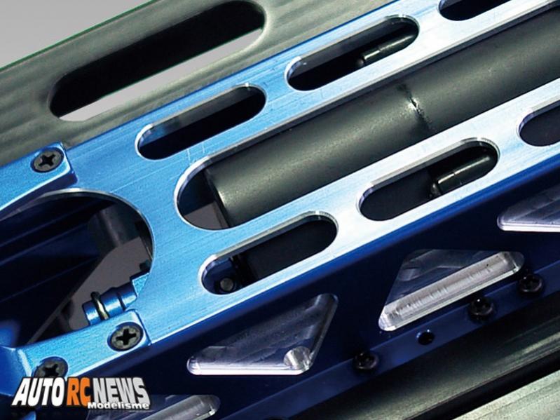 Pour différencier cette nouvelle versions précédentes, le châssis compose avec une anodisation revue, bleutée. La suspension qui est l'un des points forts de l'engin, comporte pas moins de deux amortisseurs par roues conférant au monster une garde au sol hallucinante et une capacité de franchissement du même acabit. Sur la partie arrière, l'engin laisse deviner une wheelie bar qui permettra de le stabiliser sur ses roues arrières à l'accélération. Le gabarit de l'auto continue d'être toujours aussi généreux et extravagant. Le monster de 5,8 kilos affichant un débattement de 368 millimètres pour 615 mm de long sur 438 mm de large ! La garde au sol frisant de son côté les 11 centimètres.