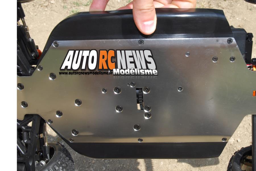 Pour essayer cette auto, je me suis muni au préalable de deux packs d'accus Li-Po de marque Bionic. Il s'agit de packs de 4000 mA en 30C qui se situent dans une fourchette moyenne de performances à l'heure actuelle. Le Trophy Buggy Flux se pilote un peu différemment de son homologue thermique RTR. Terminé les petits coups de gaz intempestifs que l'on pouvait donner de temps en temps pour relancer le moteur dans les virages. Avec le moteur brushless, on pilote plutôt tout en douceur, tout en linéarité. Un premier défaut va apparaître sur l'auto en ce début de test. Celle-ci étant réglée beaucoup trop basse sortie de boîte. Résultat, le châssis traîne, racle même un peu trop le sol, et en particulier à l'arrière au moment du transfert de masses inévitable qui s'en suit à chaque accélération. Rien de bien grave puisqu'il suffira de rajouter des cales sur les quatre amortisseurs pour retrouver une garde au sol convenable. Le réglage qui a été utilisé durant la totalité du test se référant à une cale d'un centimètre sur chaque amortisseurs arrière, puis à une cale de 0,5 mm sur chaque amortisseur avant.