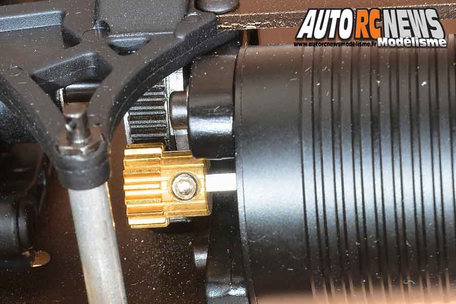 Le moteur possède un pignon vissé de 17 dents interchangeable pour modifier le braquet d'origine.