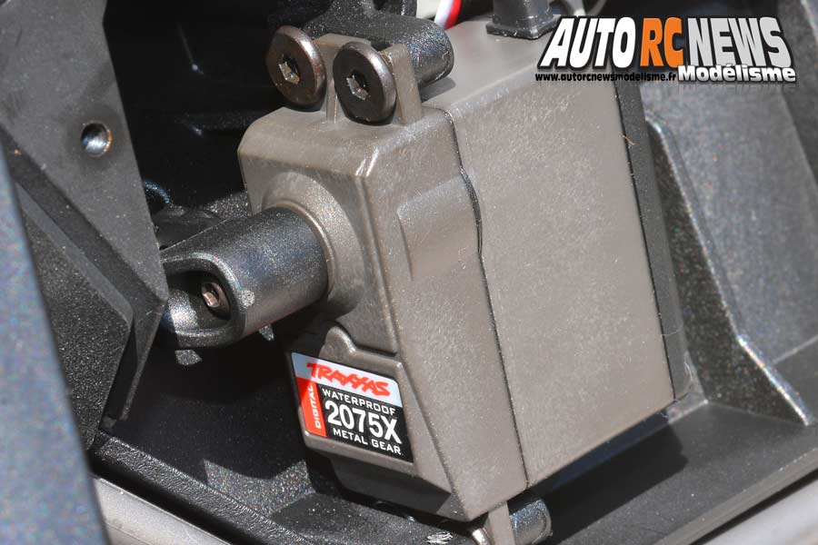 Le servo de direction Traxxas 2075X est étanche et doté de pignons métal. Il fournit un couple de 9 kilos aux roues avant largement suffisant.