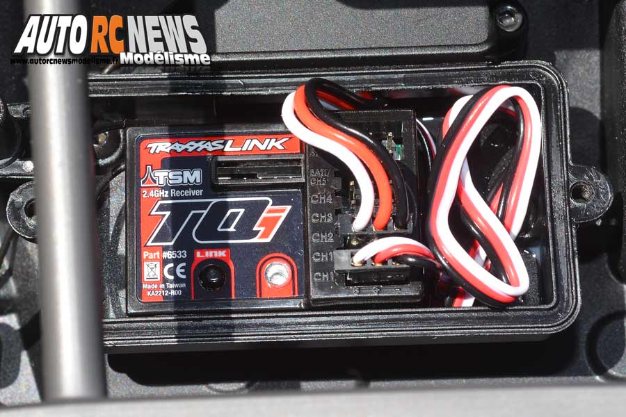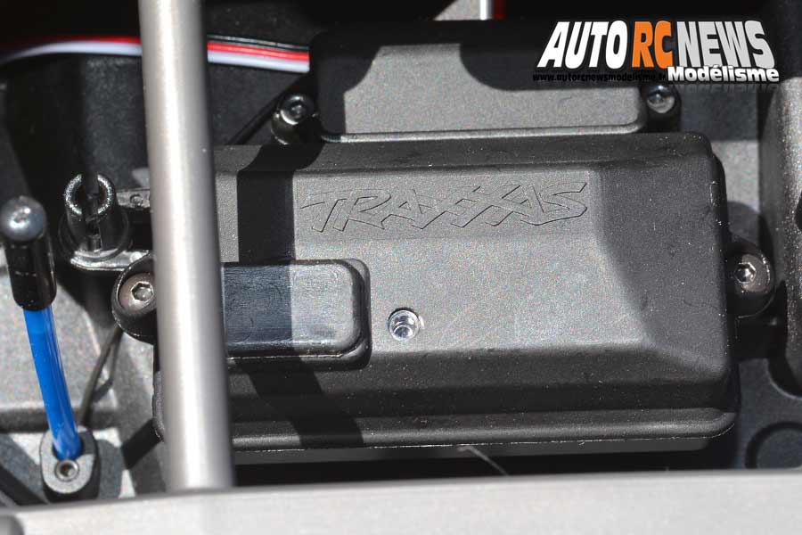 L'émetteur Top Qualifier Traxxas propose encore tout un lot d'options et de réglages, et affiche également la télémétrie en temps réel lorsqu'il est relié à votre smartphone préféré par l'intermédiaire du module option wireless Bluetooth réf : 6511. Sinon, l'Unlimited est équipé d'un servo étanche à pignons métal qui délivre 9 kilos de couple aux roues avant, et dont la vitesse s'établit à 0,17 sec sur 60 degrés. Et pour trouver le récepteur de l'auto, il faut se diriger vers l'avant du véhicule. Le Traxxas Unlimited fait appel à un modèle étanche doté d'un joint en silicone qui demeure logé au sein d'un boîtier également étanche de format 181mm x 46mm x 56mm.