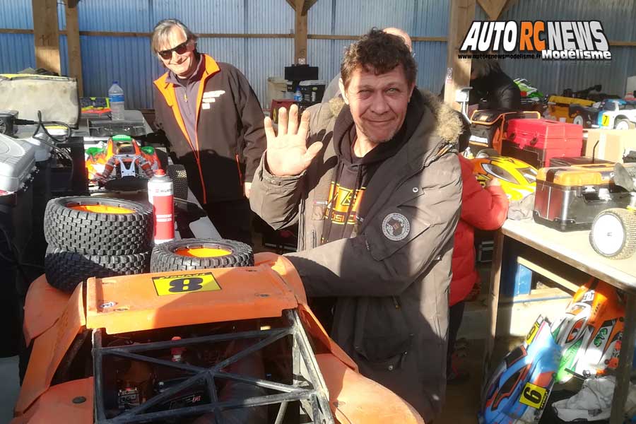 Grosse effervescence dans les stands cette saison, avec tous les acteurs de la Big Scale présents à Chanu ! Avec dans le désordre, Mickael Provost le préparateur moteur, puis Peuziat Racing Team représenté sur place par Michel Peuziat. Mais encore RC Performance avec Gwendal le Rouzic et toute son équipe, dont le champion de France en titre Théo Planté. On comptait encore dans les rangs Thomas Laigle qui avait fait un stand de vente sur place, ainsi que les Teams bien connus de cette catégorie comme le Team AMR33 de Reignac emmené par la sympathique famille Soubielle. L'indéboulonnable Maurice Sartiaux était bien sûr fidèle au poste, accompagné par on inénarrable complice Pascal Coquempot. Présence également de quelques pilotes sudistes comme Judicaël Gandino, qui n'avait pas hésité à accomplir le très long déplacement pour se joindre à cette manche. Autre fidèle par excellence des épreuves de TT 1/5, le coiffeur de ces dames, alias : Bernard Verset, le vrai ! Bref, une belle brochette de pilotes qui promettait un beau spectacle dès le début des qualifications.