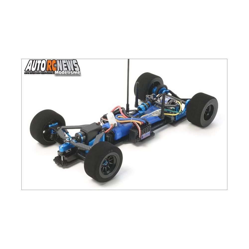 Châssis haute performance 1/10ème de type propulsion adapté aux carrosseries F1. Basé sur le châssis F104 Ver.II, le TRF101 se caractérise par le positionnement longitudinal du pack d’accus et sa platine inférieure en carbone. La suspension arrière comporte une rotule centrale et des tirants avec amortisseurs de tangage et roulis (amortisseur à friction aluminium + amortisseur TRF). Des réglages fins de la suspension peuvent être réalisés en utilisant diverses viscosités d’huile et duretés de ressorts. Les triangles supérieurs avant sont moulés d’un seul tenant en carbone, améliorant ainsi le comportement de l'auto en virage. De plus, il est possible d’adapter indépendamment un moteur brushless ou un moteur à charbons à bord de cette machine. Une auto qui pourra encore compter sur de nouvelles pièces comme un axe de transmission en carbone, un support moteur et des tirants de suspension.