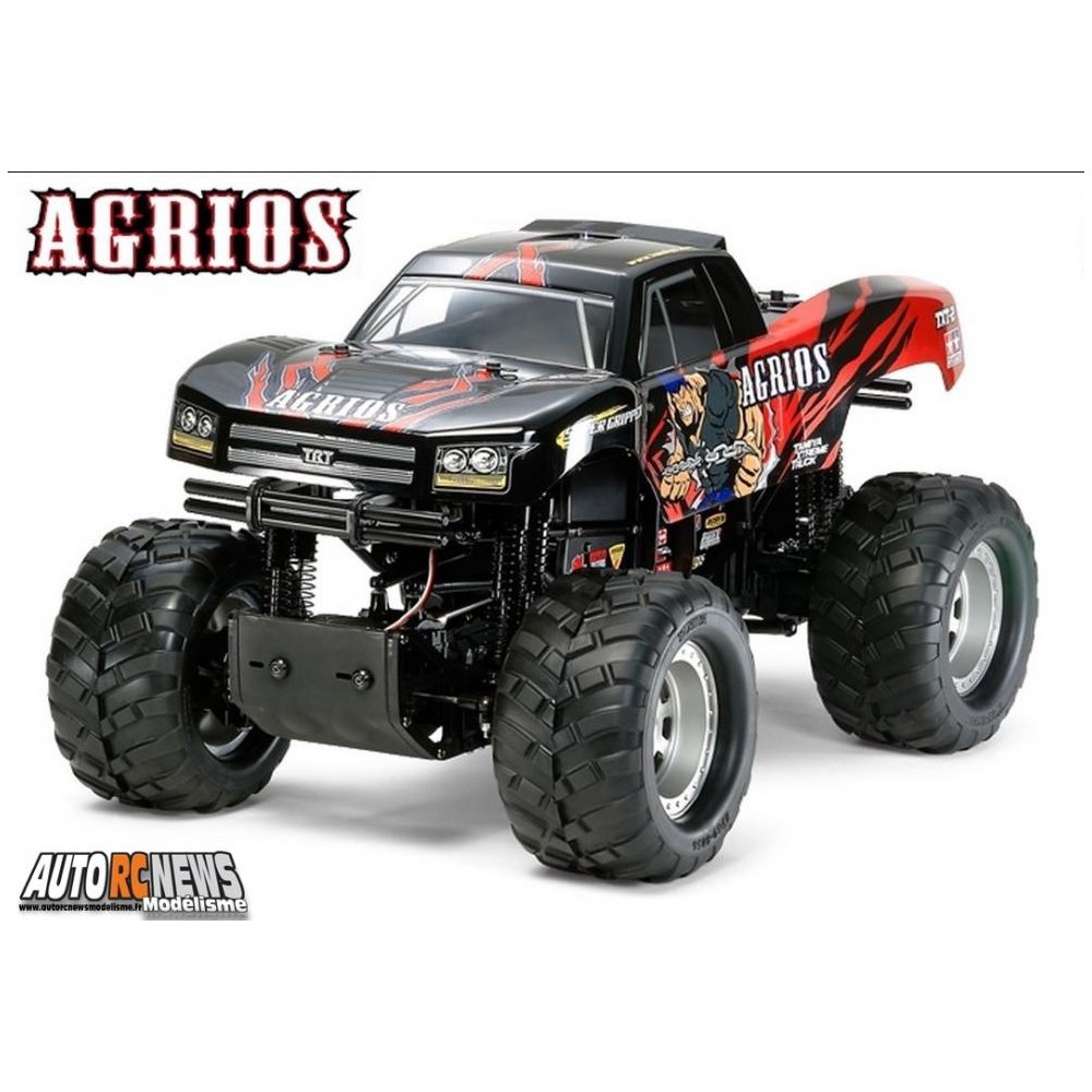 Aux Etats Unis, l'Agrios fait partie des monster trucks les plus populaires de sa génération que l'on a coutume de côtoyer dans les compétitions ou les spectacles ayant trait à ses engins venus de nulle part. Tamiya nous propose de retrouver cette auto qui transparaîtra sous la forme d'un monster électrique à l'échelle 1/10ème équipé de pneus de 82 mm de largeur et de 151 mm de diamètre. L'Agrios est un monster truck quatre roues motrices de 510 mm de long élaboré à partir d'une base châssis TXT-2. Il se voit doté d'une suspension à huit amortisseurs et d'un arbre de transmission en résine. Sachez que des options sont déjà prévues pour upgrader l'Agrios, dont de magnifiques amortisseurs en aluminium disposant de réserves d'huile effectives !