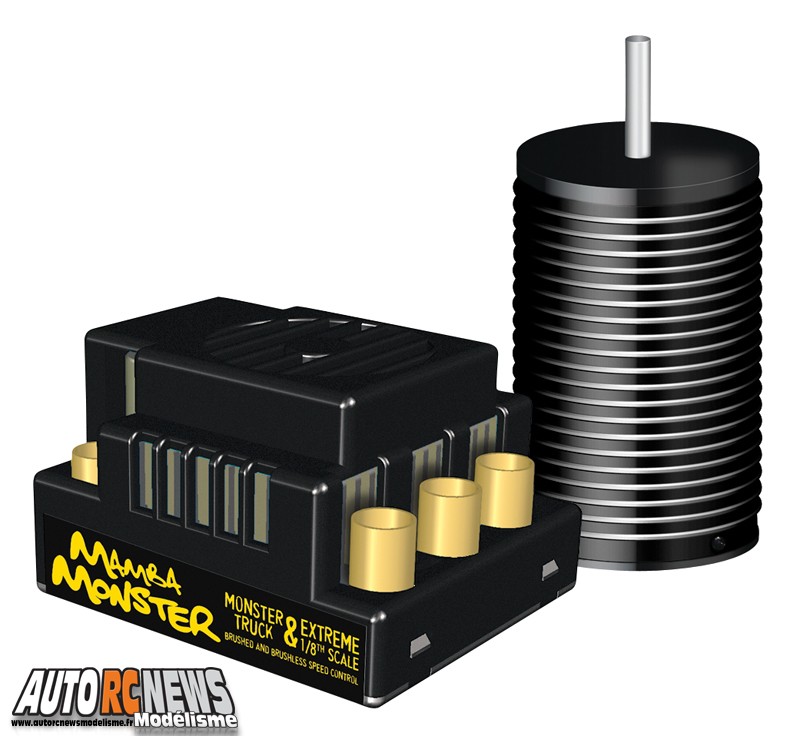 Un moteur brushless Mamba de 2200 Kv équipe cette auto en compagnie d'un contrôleur Mamba Monster. Le tout pouvant fonctionner avec des accus Li-Po 2 x 3S. Soit 22,2 volts !