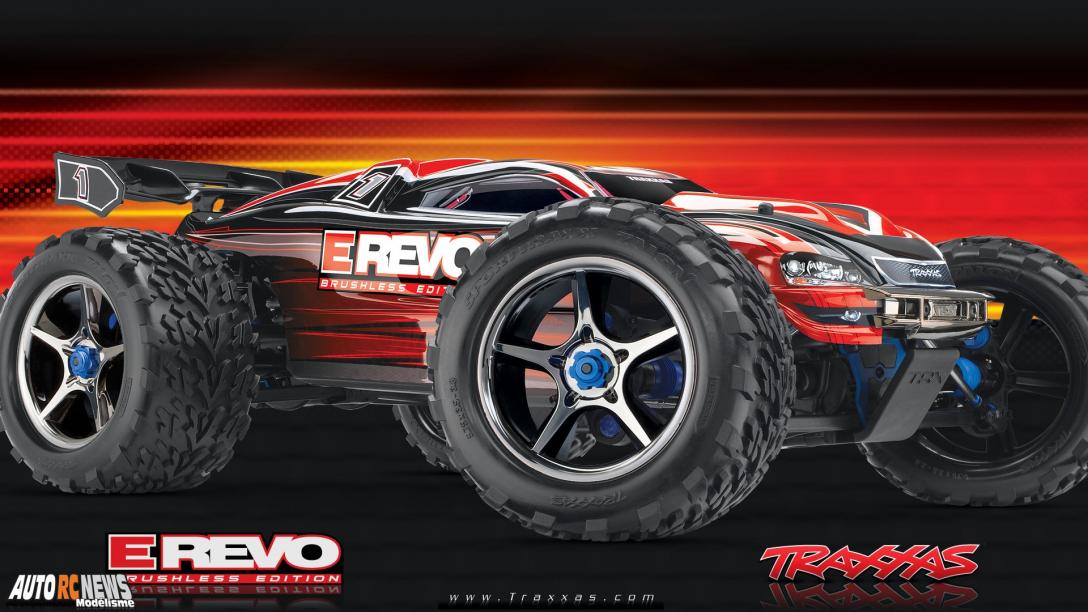 L'E-Revo signé Traxxas revient dans une version électrique brushless très musclée pouvant flirter, voire dépasser les 100 km/heure !